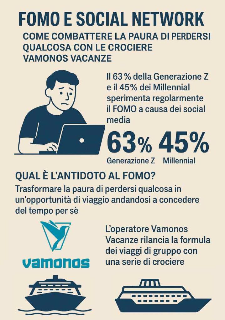 «Il 63% della Gen Z e il 45% dei Millennial lo sperimentano regolarmente, soprattutto a causa dei social media, che amplificano il confronto con la vita (apparente) degli altri» mettono in evidenza gli specialisti di Vamonos Vacanze.